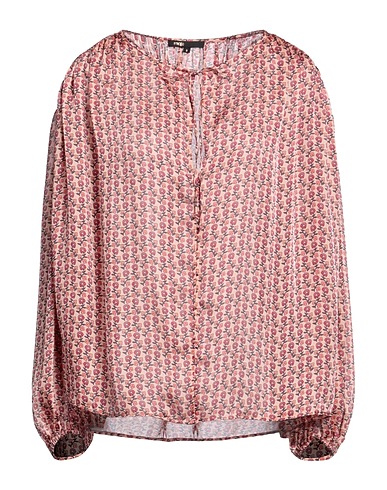 top, satin, floral-print, no appliqués, crewneck, long sleeves, puffed sleeves, tie fastening