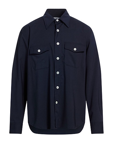 GRIFONI Solid colour shirt BLU NAVY 98% Virgin Wool, 2% Elastane