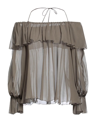 chiffon, tiered, plain colour, long sleeves, no pockets, this brand runs small, off-the-shoulder top