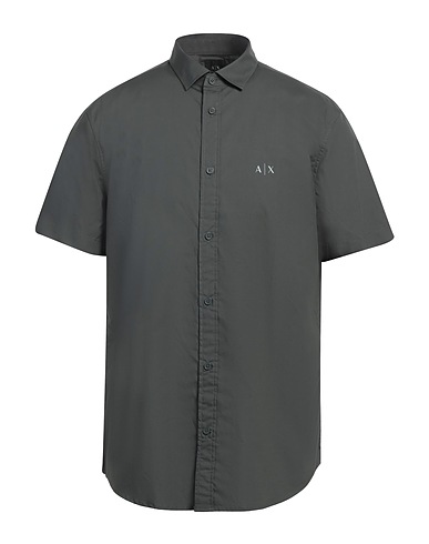 woven, brand logo, plain colour with appliqués, classic collar, short sleeves, button fastenings, no pockets, regular-fit shirt
