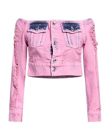 denim jacket, denim, faded, no appliqués, plain colour, coloured wash, off-the-shoulder, long sleeves, unlined, button fastenings, two chest pockets, machine wash or dry clean, do not tumble dry