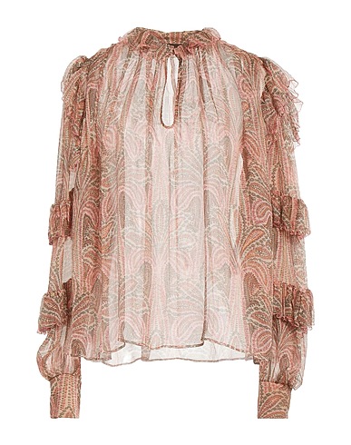 ruched top, georgette, paisley-print, ruffles, v-neck, long sleeves, dry clean, do not bleach, do not tumble dry