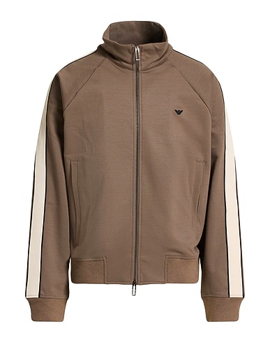 jersey, stretchy fabric, plain colour with appliqués, side seam stripes, embroidered logo, knitted trims, turtleneck, long sleeves, zip fastening, slit pockets, machine wash, do not bleach, do not tumble dry