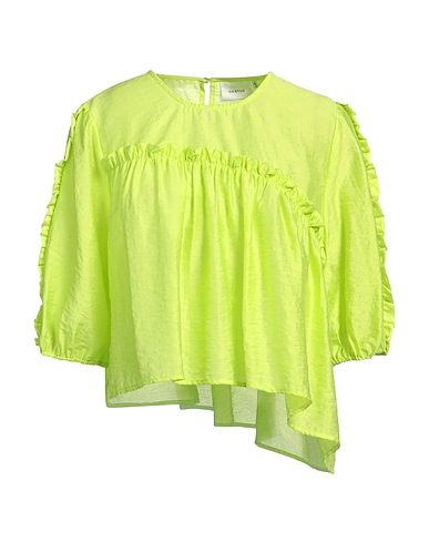 top, woven, ruffles, plain colour, crewneck, 3/4 length sleeves, 1 button, without pockets, machine wash, do not bleach, do not tumble dry