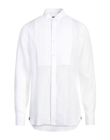 tuxedo shirt, linen, plain colour, no appliqués, mandarin collar, long sleeves, buttoned cuffs, button fastenings, machine wash or dry clean, do not bleach, do not tumble dry