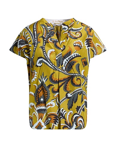 top, satin, floral-print, no appliqués, v-neck, short sleeves, button fastenings, dry clean, do not bleach, do not tumble dry
