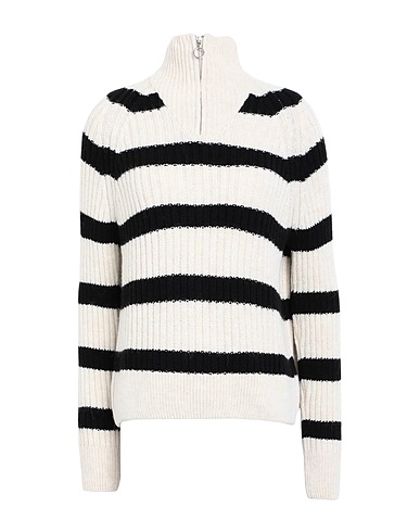 knitted, lightweight knit, ribbed, no appliqués, striped, half-zip neckline, long sleeves, without pockets