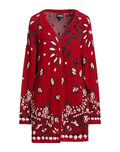 knitted, jacquard, lamé, medium-weight knit, brand logo, floral design, deep neckline, long sleeves, multipockets