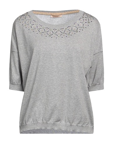 knitted, mélange, lightweight knit, brand logo, crystals, plain colour with appliqués, crewneck, short sleeves, no pockets