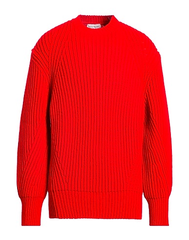 wool, medium-weight knit, no appliqués, two-tone, crewneck, long sleeves, dry clean, do not bleach, do not tumble dry
