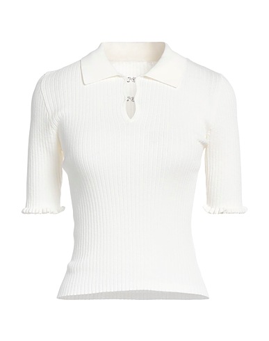 knitted, lightweight knit, plain colour with appliqués, crystals, brand logo, polo collar, short sleeves, hook fastenings, hand wash, do not bleach, do not tumble dry