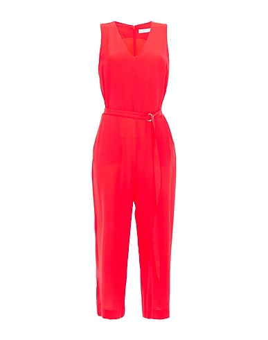 crepe, belt, logo, solid colour, v-neck, sleeveless, multipockets, rear closure, hook-and-bar, zip, stretch