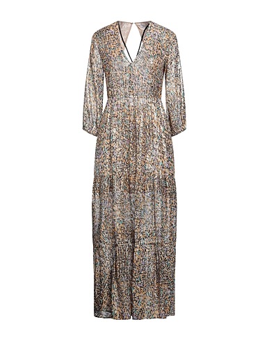 crepe, lamé, brand logo, leopard-print, v-neck, long sleeves, fully lined, 1 button, no pockets, dress