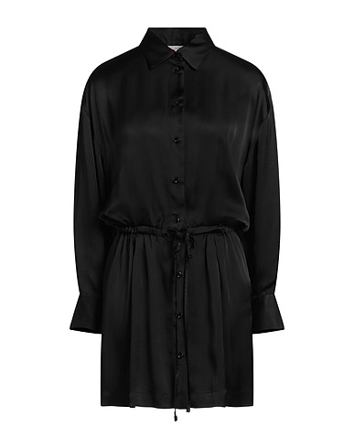 shirt dress, satin, plain colour, no appliqués, classic collar, medium wash, long sleeves, unlined, button fastenings, without pockets