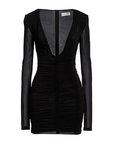 bodycon dress, synthetic jersey, gathered, draped, plain colour, deep neckline, long sleeves, with shoulder pad, fully lined, zip fastening, no pockets, stretch