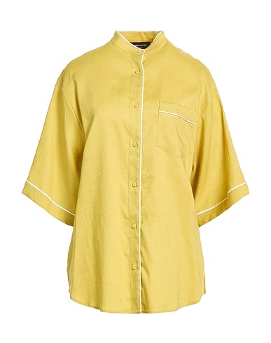 long shirt, linen, two-tone, no appliqués, mandarin collar, 3/4 length sleeves, button fastenings, one chest pocket, machine wash or dry clean, do not bleach, do not tumble dry