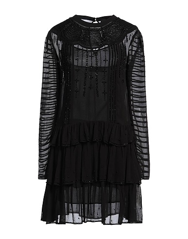 bodycon dress, crepe, beads, tiered, plain colour with appliqués, crewneck, long sleeves, without pockets, do not wash, do not bleach, do not tumble dry
