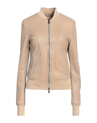 bomber jacket, leather, plain colour, no appliqués, crewneck, single-breasted , long sleeves, unlined, zip fastening, multipockets, contains non-textile parts of animal origin, specialist clean or dry clean, do not bleach, do not tumble dry