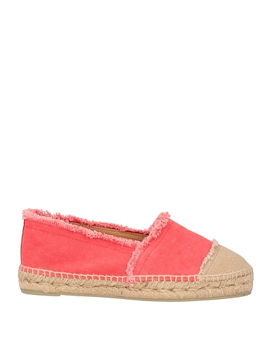 espadrilles, canvas, two-tone, fringes, round toe, flat, rubber cleated sole, leather lining, contains non-textile parts of animal origin