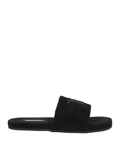 slide sandals, corduroy, plain colour, brand logo, fabric inner, square toe, flat, rubber cleated sole, small sized