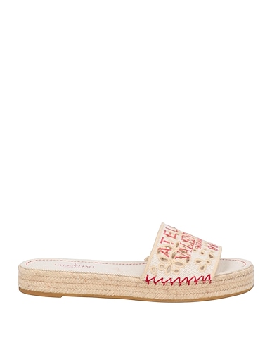 espadrille sandals, broderie anglaise, plain colour, no appliqués, fabric inner, round toe, flat, rubber cleated sole, planning a weekend getaway or beach holiday? this is the effortless summer style you need