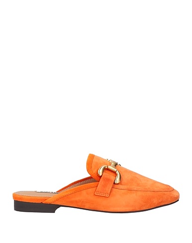 mules, suede, plain colour with appliqués, metal applications, leather lining, round toe, flat, rubber sole, contains non-textile parts of animal origin