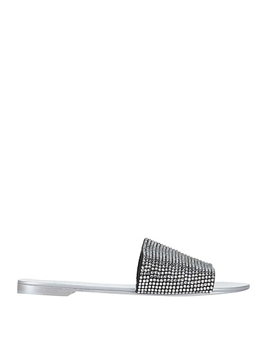 leather, crystals, two-tone, leather backing, round toeline, flat, rubber cleated sole, contains non-textile parts of animal origin, slide sandals