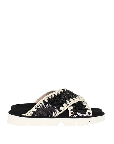 jersey, sequins, two-tone, leather lining, round toe, flat, rubber sole, contains non-textile parts of animal origin, sandals