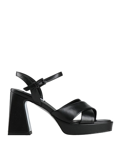 ankle strap sandals, coated fabric, plain colour, no appliqués, fully lined, buckle fastening, round toe, geometric heel, covered heel, rubber sole, contains non-textile parts of animal origin