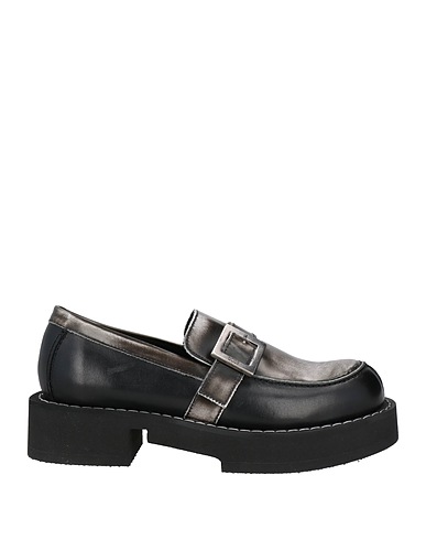 chunky loafers, leather, buckle, two-tone, leather lining, round toe, square heel, rubber sole, contains non-textile parts of animal origin