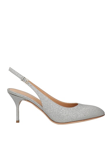 slingback pumps, leather, plain colour with appliqués, glittered, leather lining, buckle fastening, round toe, spike heel, covered heel, leather sole, contains non-textile parts of animal origin