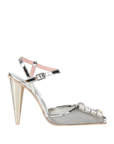 pumps, mesh fabric, synthetic material, metallic, plain colour with appliqués, crystals, leather lining, buckle-fastening ankle strap, pointed toe, cone heel, rubber cleated sole, contains non-textile parts of animal origin