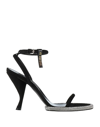 ankle strap sandals, suede, plain colour with appliqués, crystals, leather lining, buckle-fastening ankle strap, round toe, geometric heel, covered heel, leather sole, contains non-textile parts of animal origin