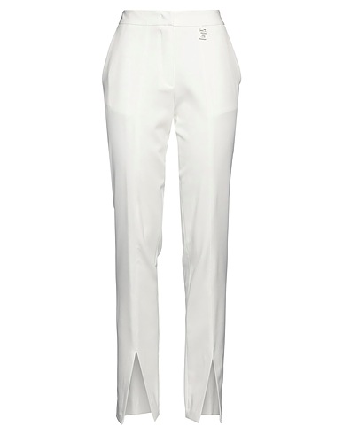tapered trousers, crepe, stretchy fabric, plain colour, brand logo, high waisted, regular fit, zip fastening, hook fastenings, side slit hemline, slit pockets, hand wash or dry clean, do not bleach, do not tumble dry
