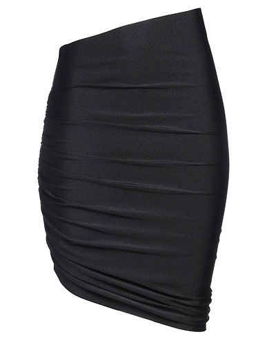 synthetic jersey, gathered, plain colour, elasticised waist, unlined, no pockets, stretch, machine wash or dry clean, do not tumble dry, do not bleach, asymmetric skirt