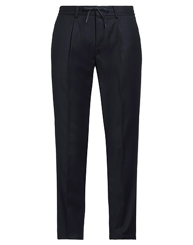casual trousers, flannel, stretchy fabric, plain colour, darts, mid rise, drawstring waist, tapered leg, regular fit, hook fastenings, zip fastening, welt pockets, dry clean, do not bleach, do not tumble dry
