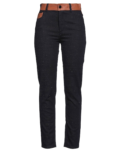 tapered trousers, tweed, leather, brand logo, two-tone, high waisted, regular fit, zip fastening, 1 button, multipockets, machine wash, do not bleach, do not tumble dry, contains non-textile parts of animal origin
