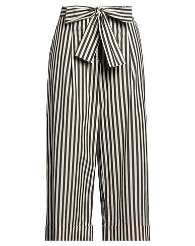 wide-leg trousers, woven, striped, belt, brand logo, high waisted, relaxed fit, folded hem, multipockets, stretch, hand wash, do not bleach, do not tumble dry, cropped