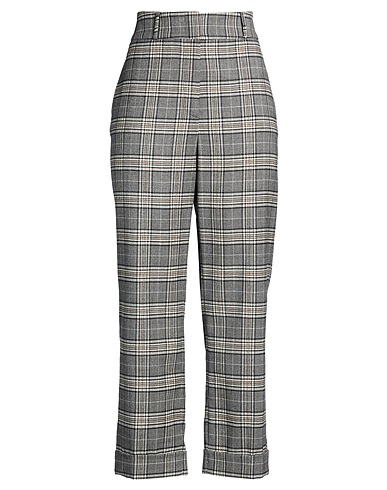 straight-leg trousers, flannel, tartan pattern, embellished, high waisted, regular fit, zip fastening, hook fastenings, folded hem, slit pockets, welt pockets, dry clean, do not bleach, do not tumble dry