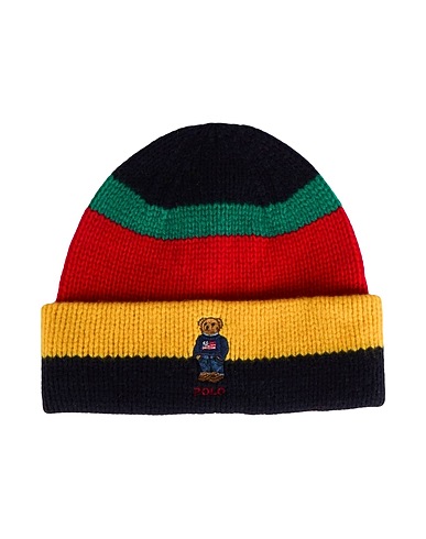 beanie , wool, medium-weight knit, multicolour, embroidered logo, dry clean, do not tumble dry