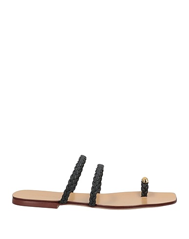 toe strap sandals, leather, plain colour, embellished, leather lining, square toe, flat, leather/rubber sole, contains non-textile parts of animal origin