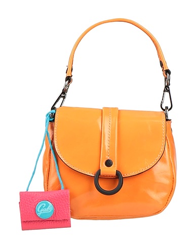 saddle bag, glossed-leather, plain colour with appliqués, detachable application, magnetic fastening, fully lined, bag handle, detachable shoulder strap, small size, contains non-textile parts of animal origin