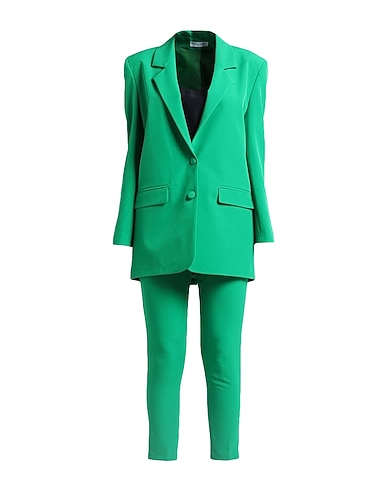 crepe, no appliqués, solid colour, lapel collar, double-breasted, long sleeves, fully lined, button closing, multipockets, high waisted, stretch, trousers model