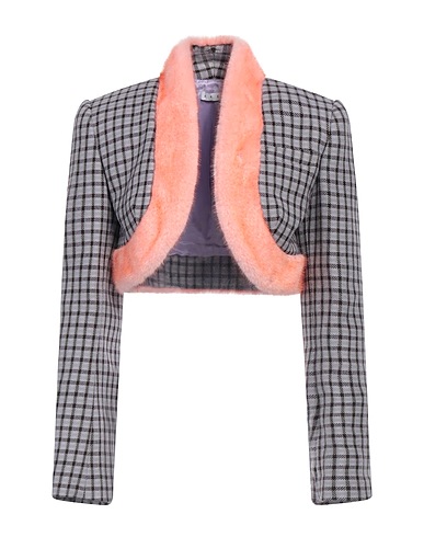 tweed, plush fabric, no appliqués, checked, deep neckline, long sleeves, fully lined, without pockets, bolero jacket
