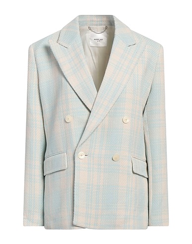 double-breasted blazer, woven, tartan pattern, brand logo, lapel collar, long sleeves, fully lined, button fastenings, multipockets, machine wash or dry clean, do not bleach, do not tumble dry