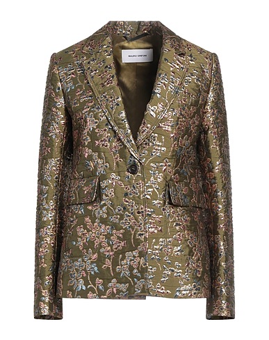 single-breasted blazer, brocade, metallic, floral-print, no appliqués, lapel collar, long sleeves, fully lined, 1 button, multipockets, dry clean, do not bleach, do not tumble dry