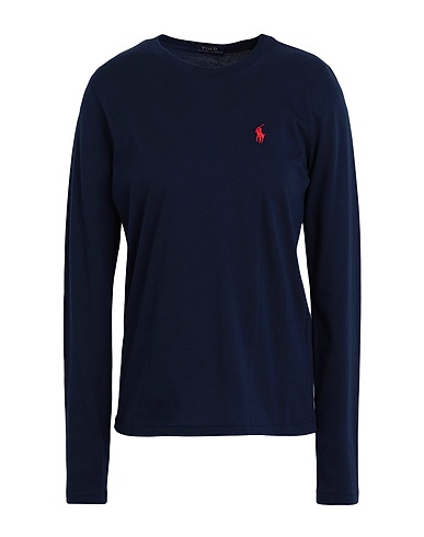 basic tee, jersey, solid color, embroidered logo, crewneck, long sleeves, machine wash or dry clean, tumble dry