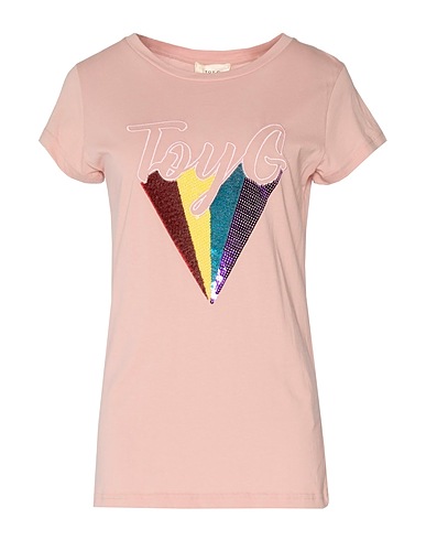 t-shirt, jersey, solid color with appliqués, brand logo, sequins, crewneck, short sleeves