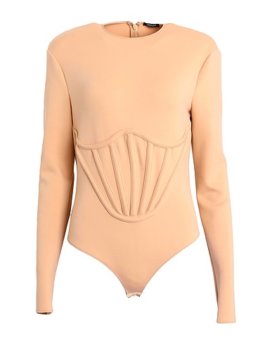 jersey, no appliqués, solid color, crewneck, long sleeves, zipper closure, no pockets, crotch of body, stretch