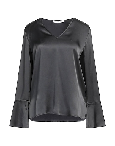 top, satin, solid color, no appliqués, classic collar, long sleeves